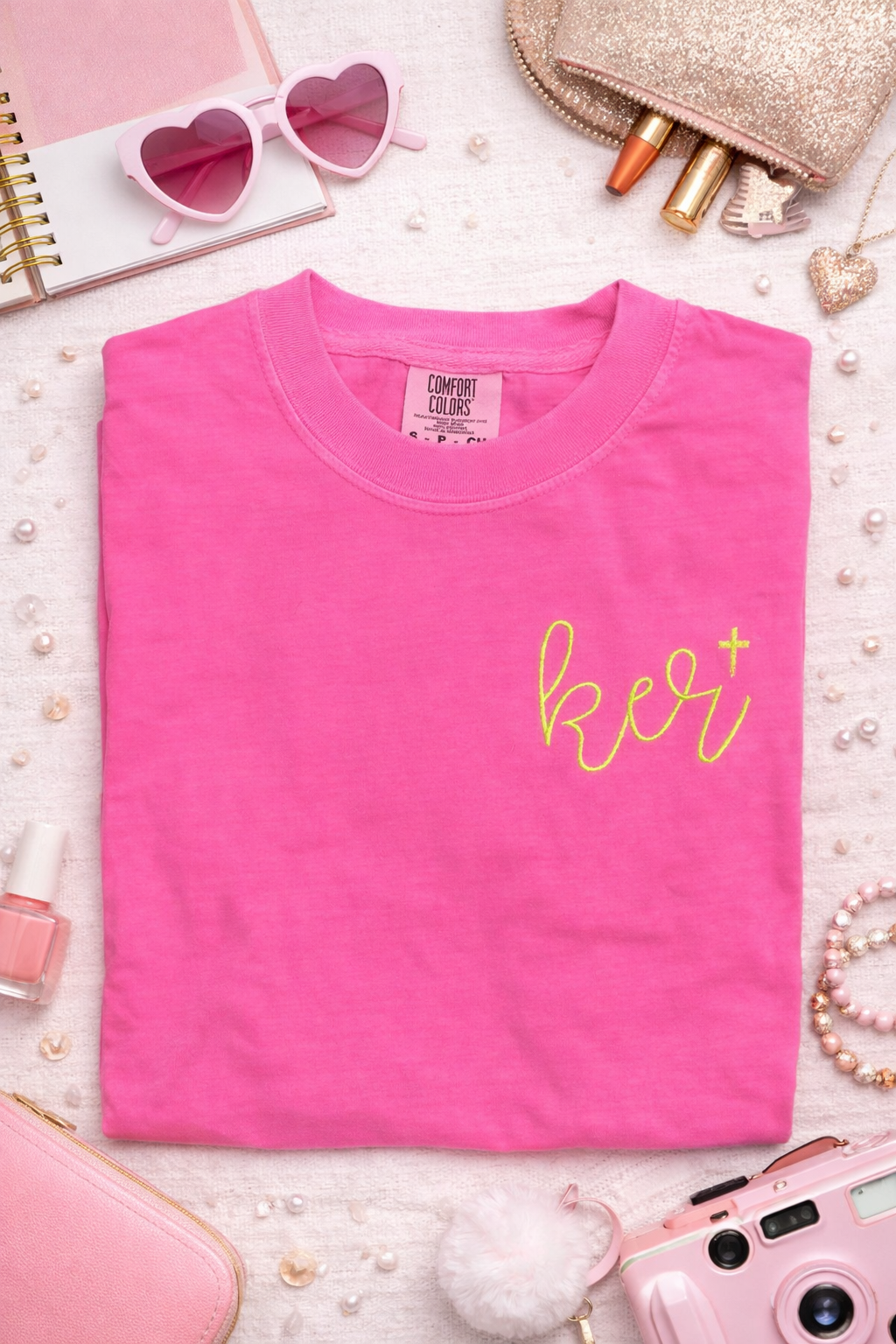 Bold, feminine, and full of meaning—this embroidered monogram cross tee is the perfect blend of faith and style. Designed on a vibrant Comfort Colors shirt, this piece features a delicate script monogram with a cross detail, representing identity, strength, and faith in a beautifully subtle way.